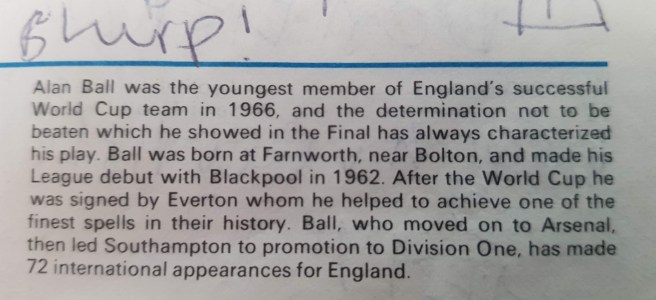 18th Oct 2021 – I’m pretty sure these were times when I could tell you all about football teams, players, scores etc even those I didn’t really follow. I think this was the time of Allan Clarke (Leeds) and Mick Channon (Southampton)?