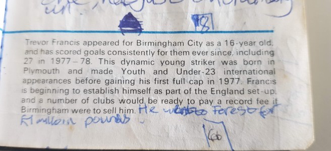 12th Apr 2022 – Trevor Francis went to Nottingham Forest for one million pounds this year – the first-ever one million pound player. It was a big deal. In my mind, the end of an era for football (looking back at least).