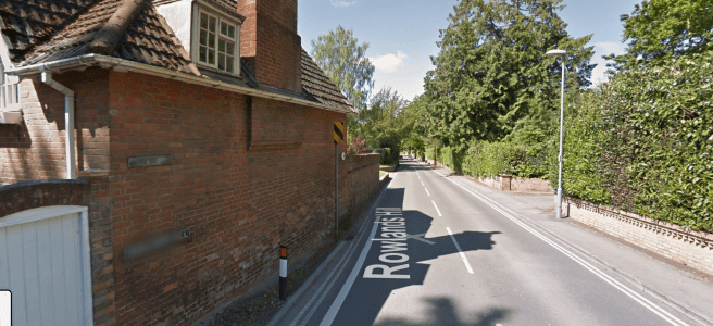 Chris’ house on the left and the entrance to the ‘mansion’ opposite.