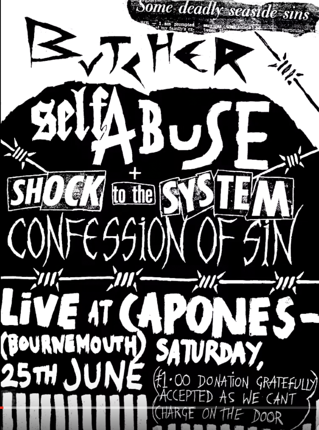 Butcher, Self Abuse, Admass, Shock To The System, Confessions Of Sin – Capones, Bournemouth – 18th (?) June 1983