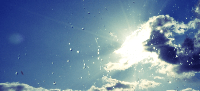 Sure enough, big globs of water slowly descend and bounce on the dry ground. And more, until a downpour which disappears as quick as it started and its traces a mere dampness and a smell fresher than mountain air.