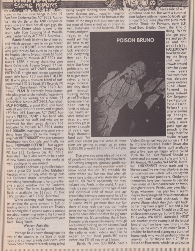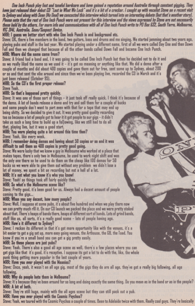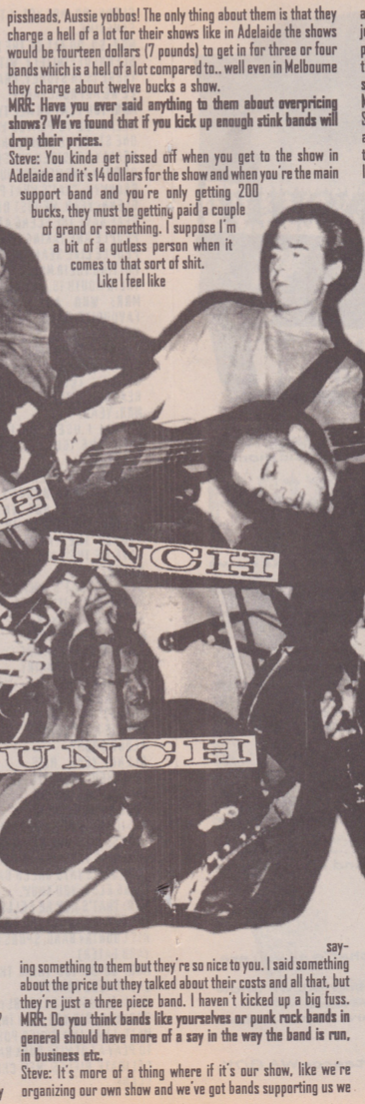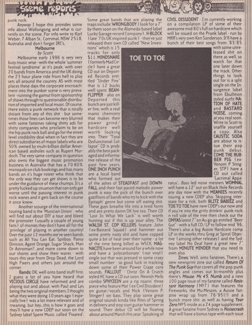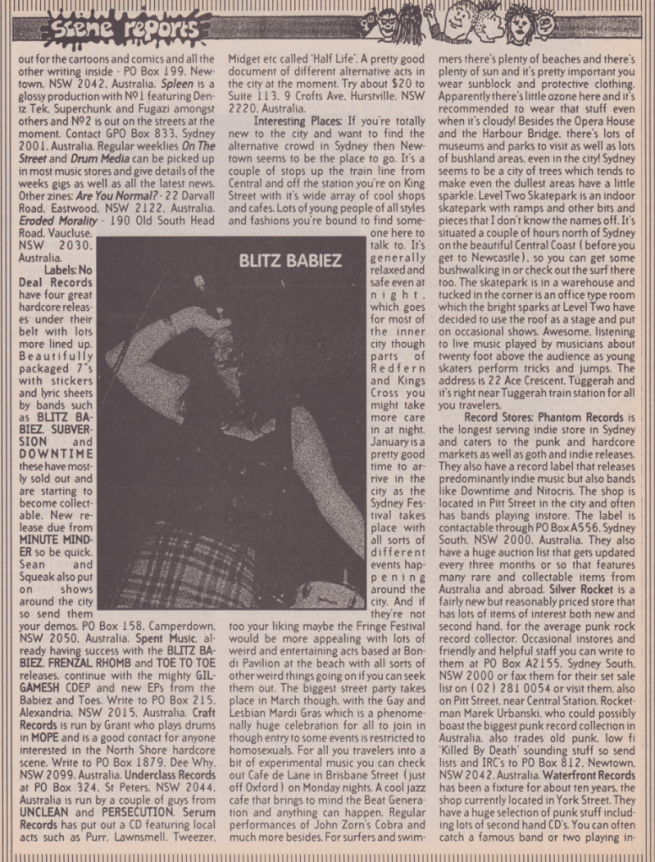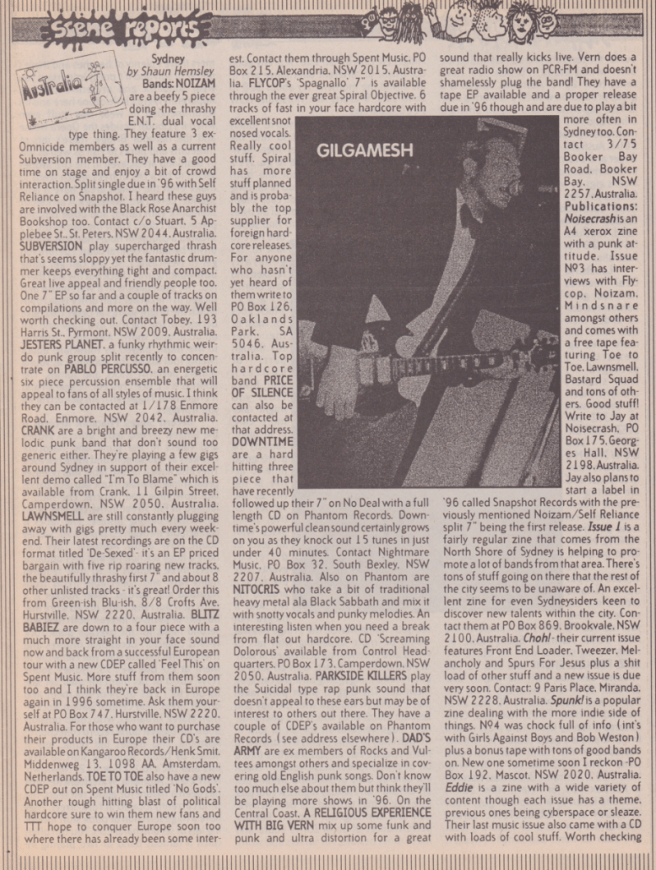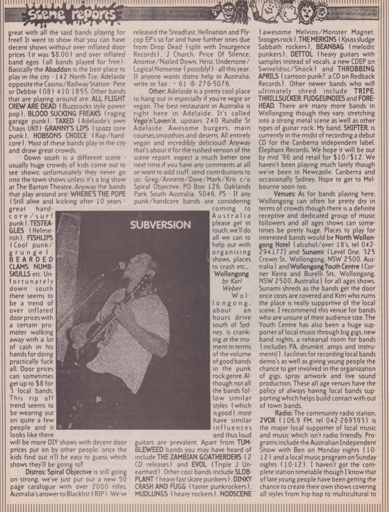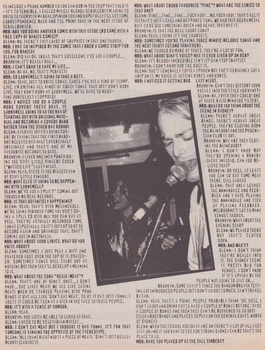 In hardcore punk terms though, Sean seemed to be the one guy everyone told me to talk to and after doing so I found out that he’s pitched to Maximum Rock ‘n’ Roll about doing an All Australian issue of the fanzine and had already started work on it. Awesome – that sounded like something I could really help out with. I threw around some ideas which were agreeable – ie – go for your life!