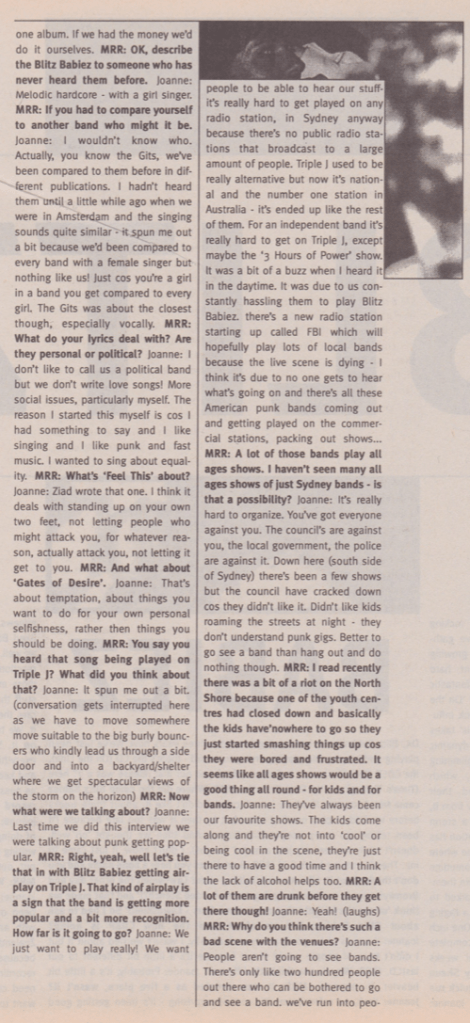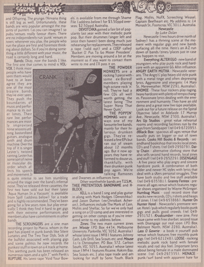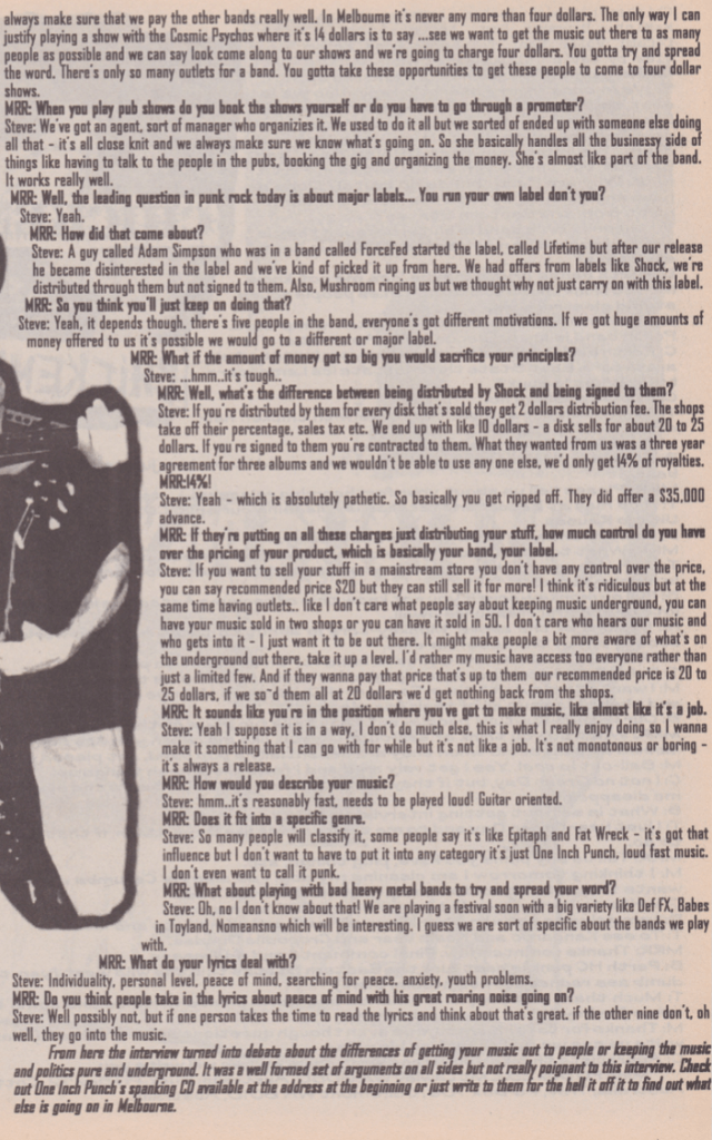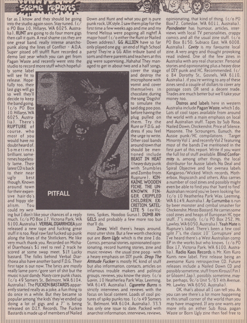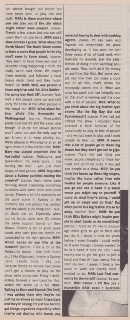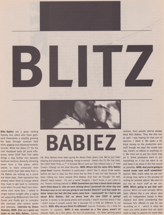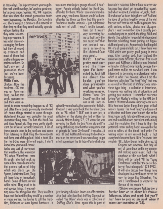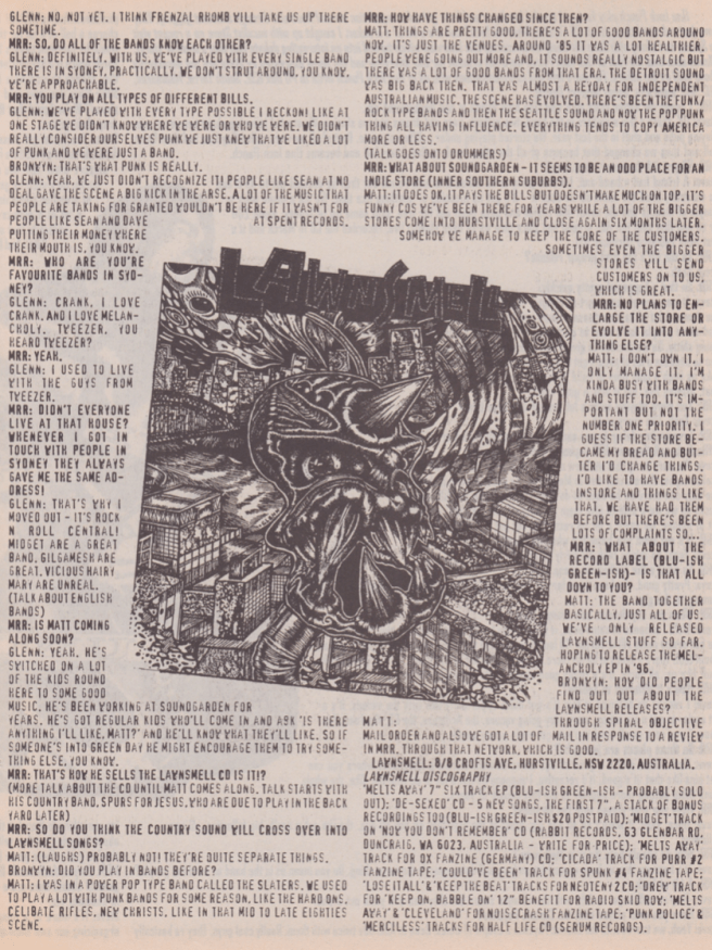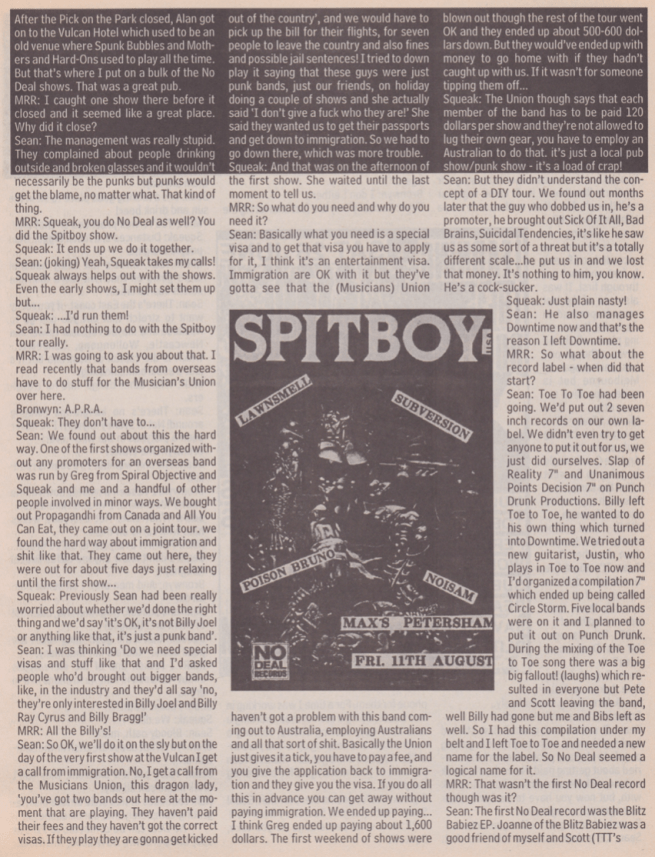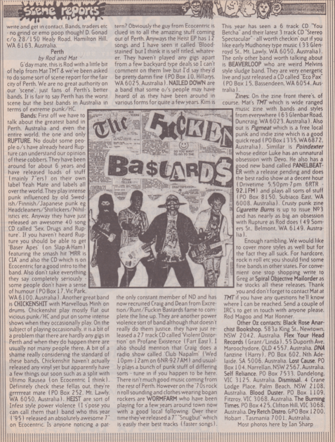 In hardcore punk terms though, Sean seemed to be the one guy everyone told me to talk to and after doing so I found out that he’s pitched to Maximum Rock ‘n’ Roll about doing an All Australian issue of the fanzine and had already started work on it. Awesome – that sounded like something I could really help out with. I threw around some ideas which were agreeable – ie – go for your life!