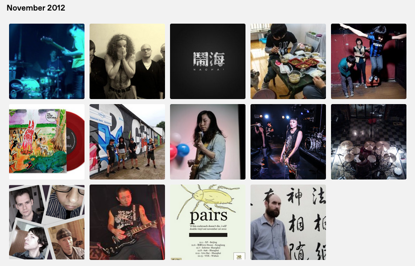 Pairs, Xiao Zhong, F, Smart Beijing, Morgan Short, Round Eye, Genjing, Shanghai, Layabozi, Naohai, Residence A, Al Jazeera, Birdstriking, Fever Machine, Dan Shapiro, Gum Bleed, This Town Touring, GoKunming, Hell Yeah, P.K.14, Steve Albini, China Music Radar, Rainbow Danger Club, Yugong Yishan, Wuhan, SMZB, John Carroll
