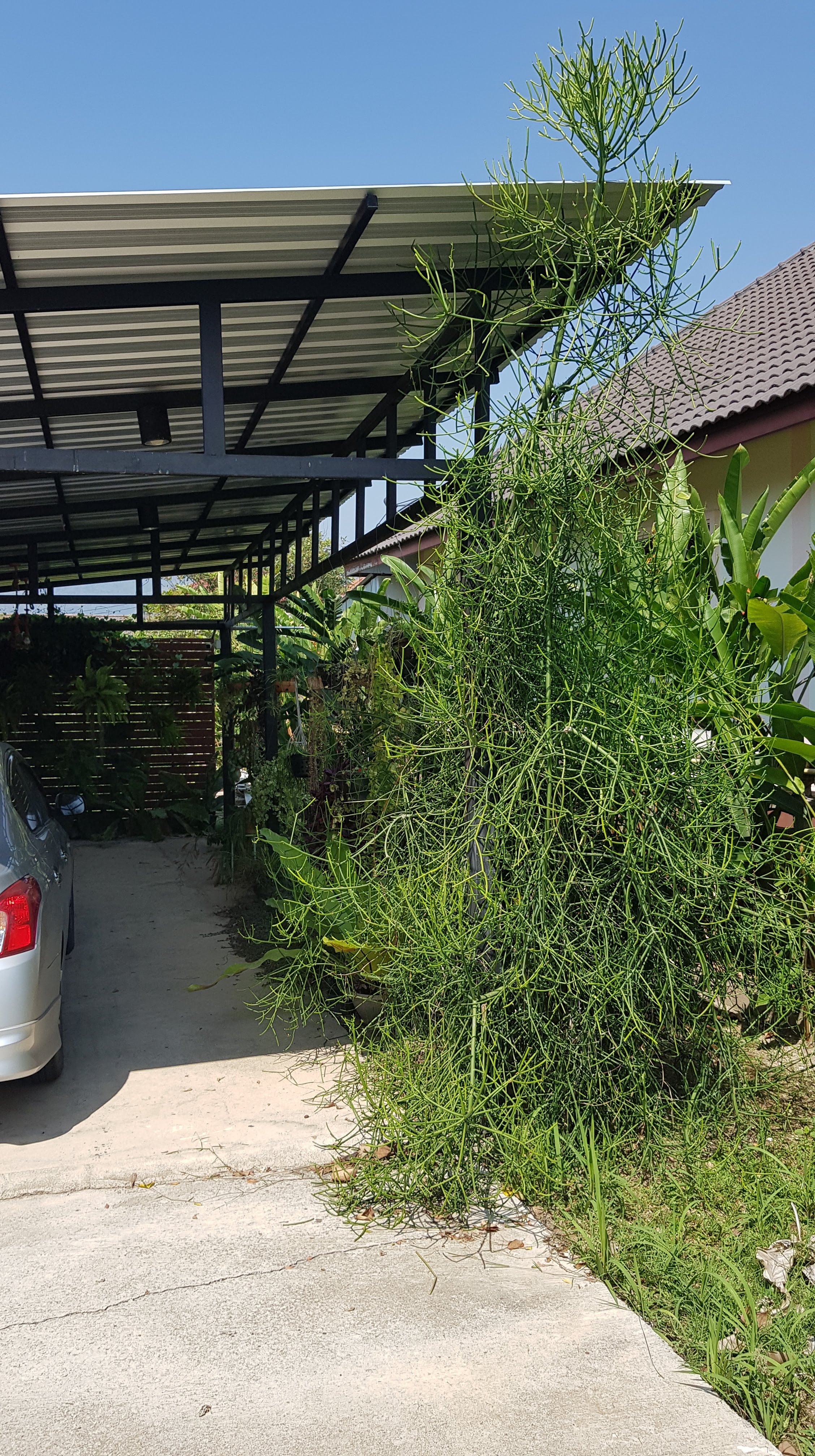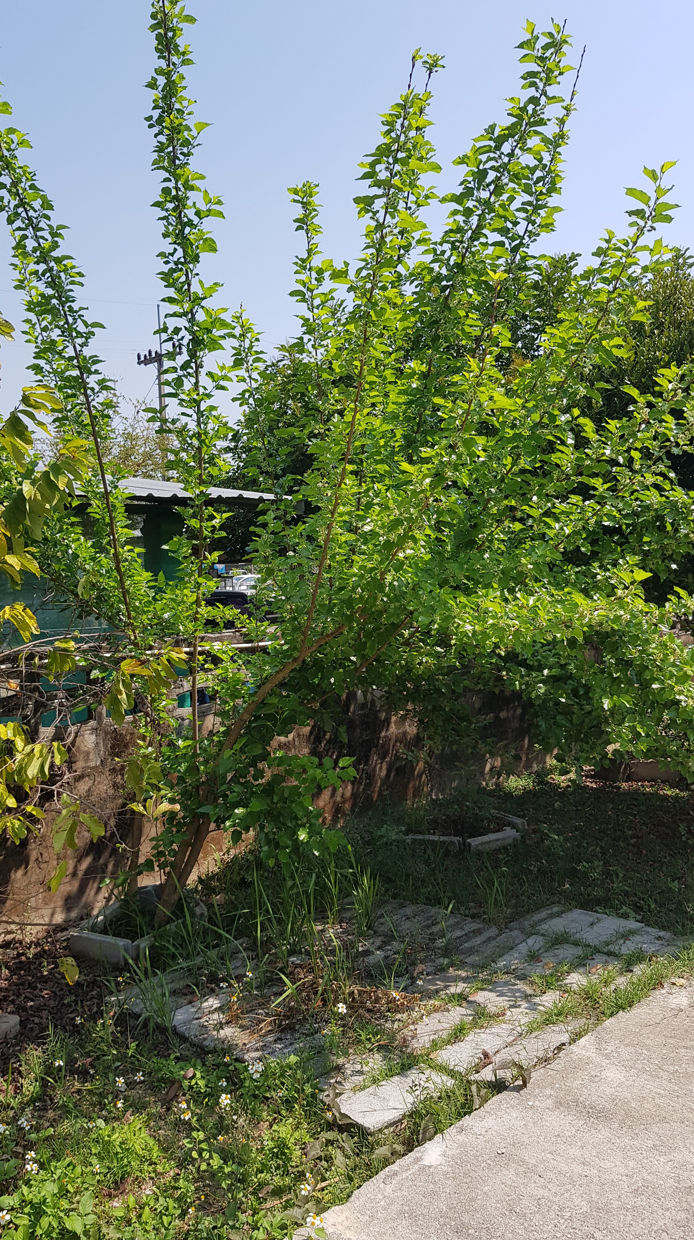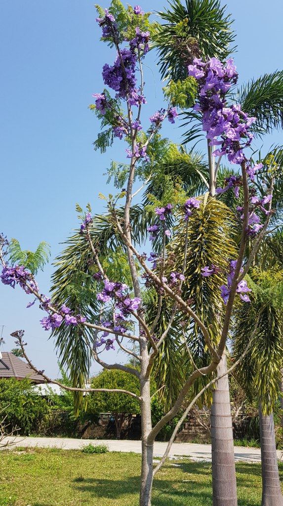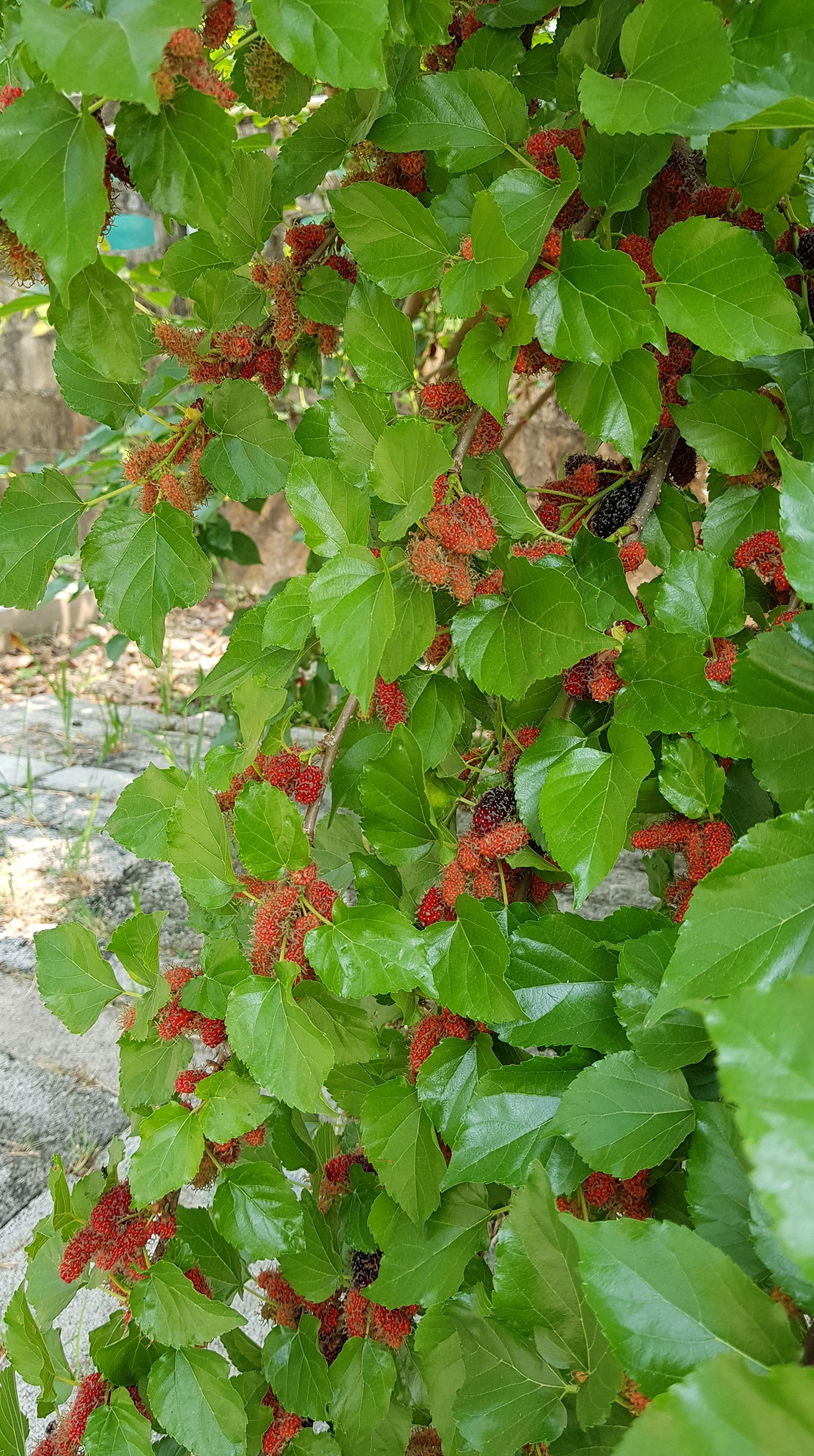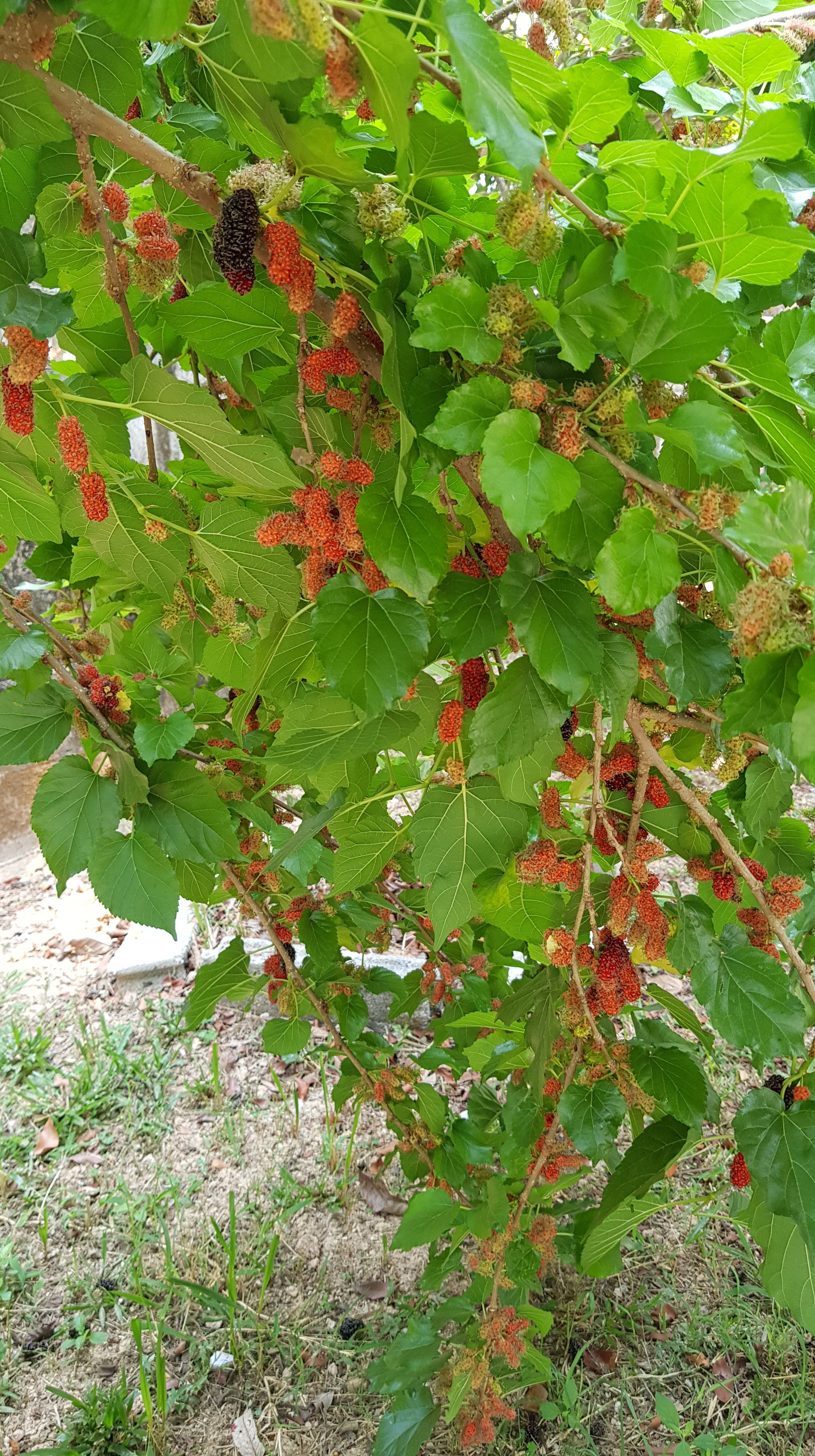 Our mulberries have gone mental this year – everyday I can pick a new bowlful.These tall branches reaching into the sky now have so much fruit that they are bending to touch the ground. I don’t know if this needs to be cut to grow differently or if it’s best to just leave it the way it is.This Jacaranda currently has more flowers than leaves. Our four Jacarandas all seem to flower at random times throughout the year. I just hope that they can live and survive a lot longer and grow as big as the ones in Australia. Love these trees.This is a weird bush, plant, tree (?) that reminds me of fractal theory – it looks like each ‘branch’ separates off into two and on and on.