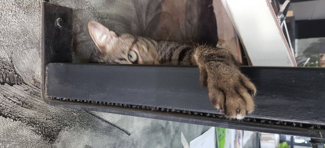 After a shower, I went back in to see Kim and to make Tangmo watch that he has to accept Kim and that we can be with her without him barking and pushing at the door. Tangmo wasn’t ready for this lesson though and pushed the doors again and barked more. Kim got angry this time and scratched me and attacked him. Eventually, I had to kick Tangmo in the head to get him out. He was very upset and ran off sulking! Kim is the priority though. And making sure the door doesn’t get fully broken. Tangmo will probably sneak back in quietly later. I’ll give him a pat then.