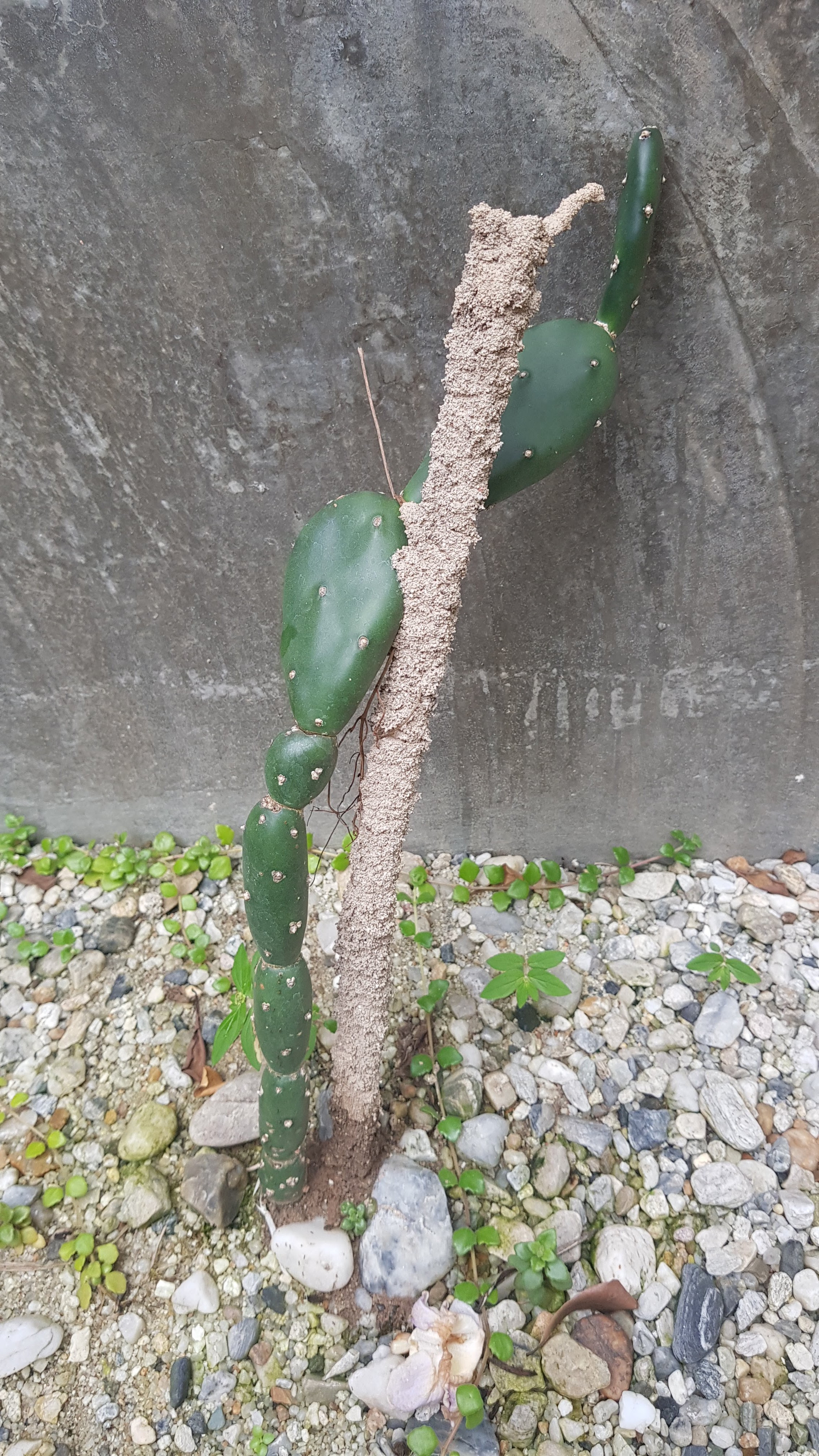 Amy has turned much of our garden into a cactus oasis, not helped much by the long rainy season this year though. It was today I noticed that this delicate cactus was being held up by this tall ants nest, originally a stick in the ground. Ants will rule the world. They are also back in our kitchen building a small nest by the back door again.