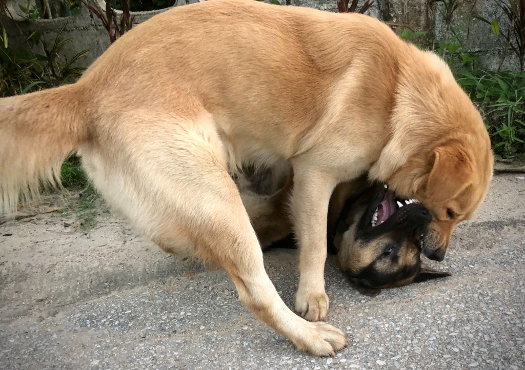 I took this picture because these two kept me company for a little while this morning on my walk. They looked like they were trying to kill each other but all the while wagging their tails and jumping up to run off again.
