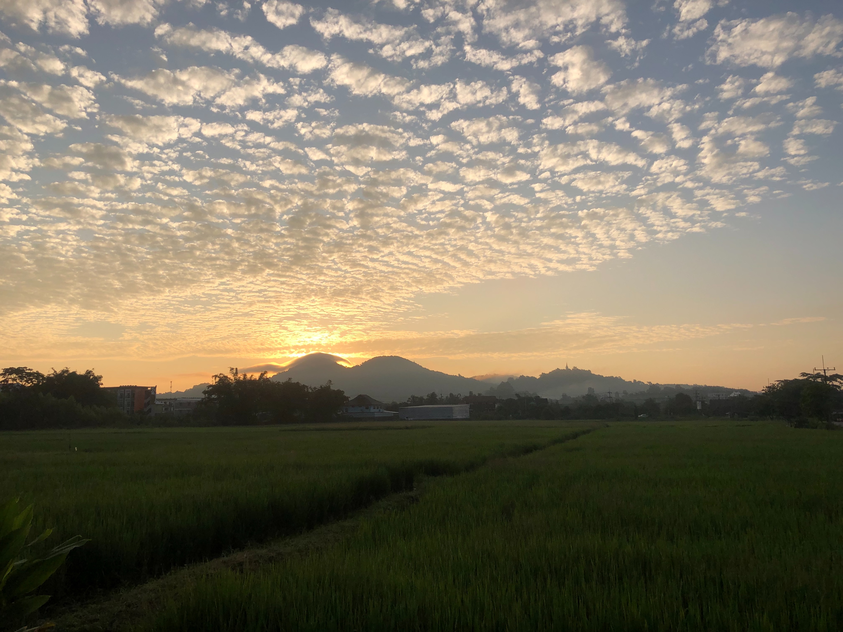I took this picture because this is what my students drew on the board before class started. Baipad and Jan claimed responsibility and which was a little surprising though I know Baipad loves drawing. The picture made me laugh and then I teased them that I would show the head teacher and they begged me not to.This is Trevor’s picture but of the same sunset that I was looking at last night. It was mesmerising.