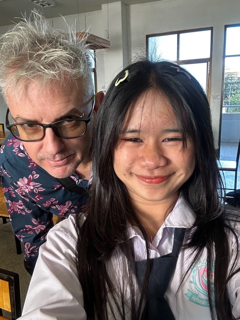 At the morning flag ceremony KanomBang was crying heavily as her beloved dog had died. She was inconsolable so I just put my arm around her and gently patted her arm. Other students were still laughing and playing and I’m not sure what they were saying but Nomsen gave her some sympathy and support too. She was ok by the afternoon and showed me a picture of her dog and told me it had been hit by a motorbike which is a common occurrence here unfortunately.
