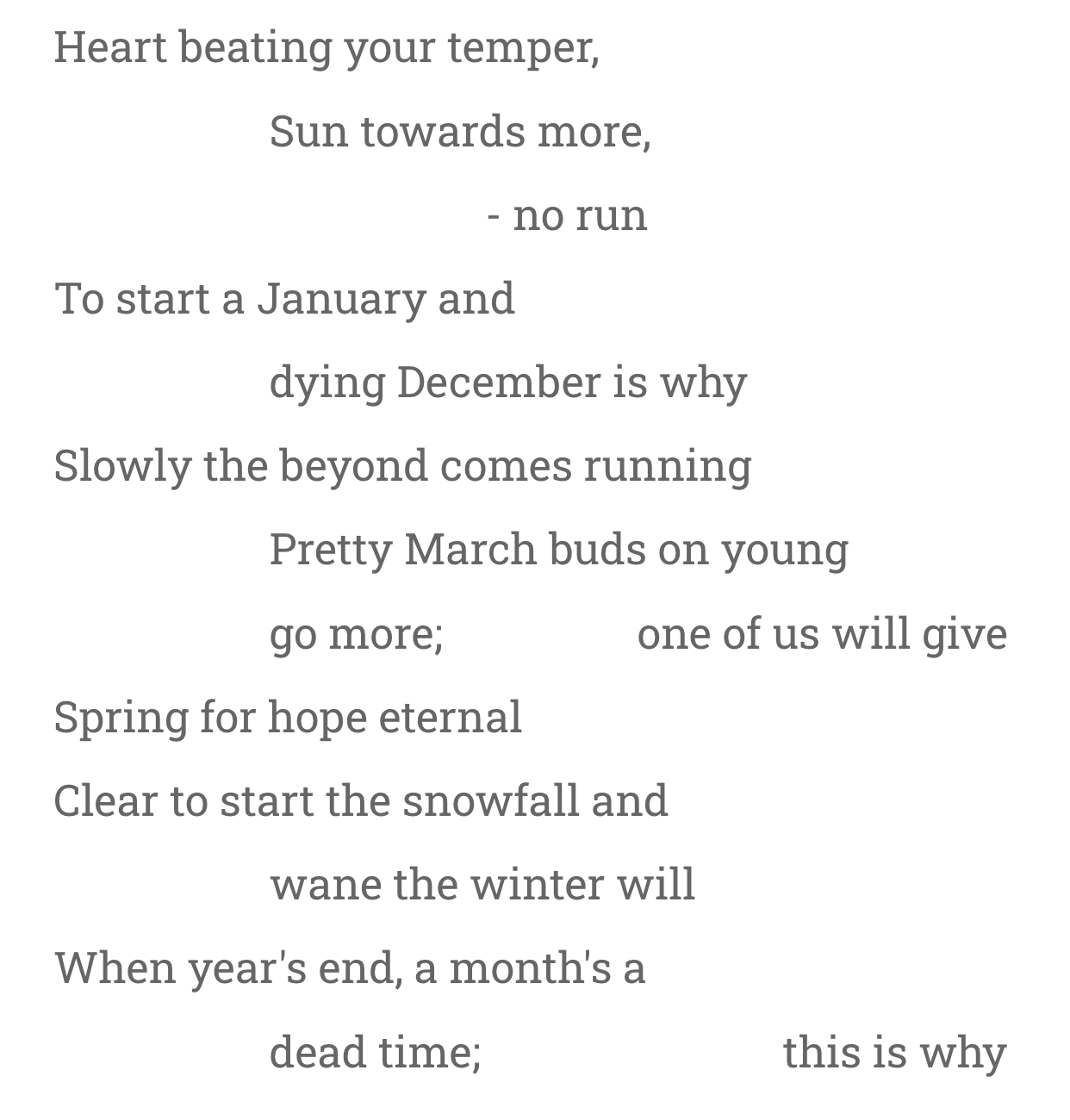 I thought the best answer might be that I was playing a game. This game involves finding words and sentences of a particular length with specific rhymes as well as adequately conveying a message for the reader. What do you win? Well, the fun is in the playing, not the prize.