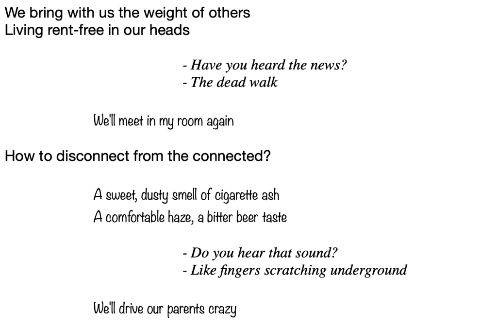 A sweet, dusty smell of cigarette ash A comfortable haze, a bitter beer taste