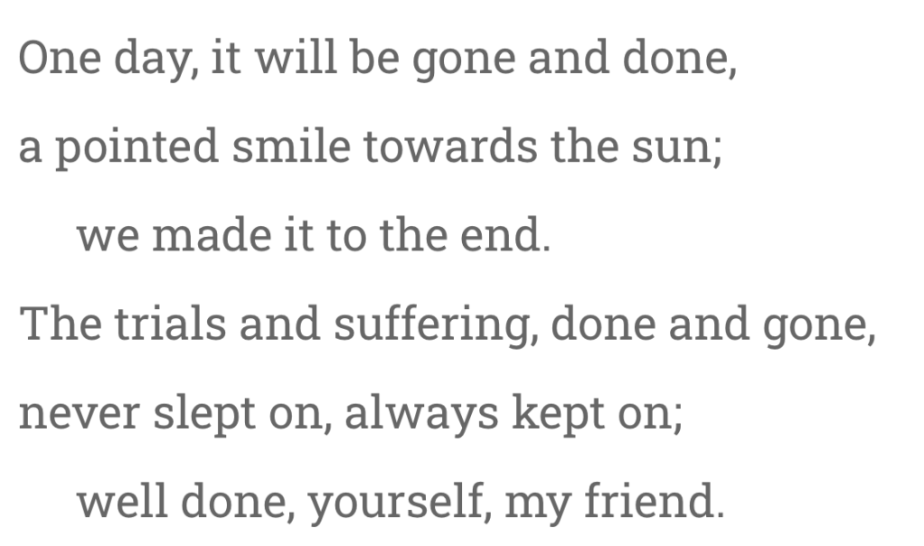 Shared with Momoetry April Poet Month challenge – finish. Inspired by the real-life struggles of a 16-year-old student, I reminded her to look at this situation with the positive spin that she usually can muster but cannot see right now. I remember that feeling, though I was never able to muster any positivity at the time.