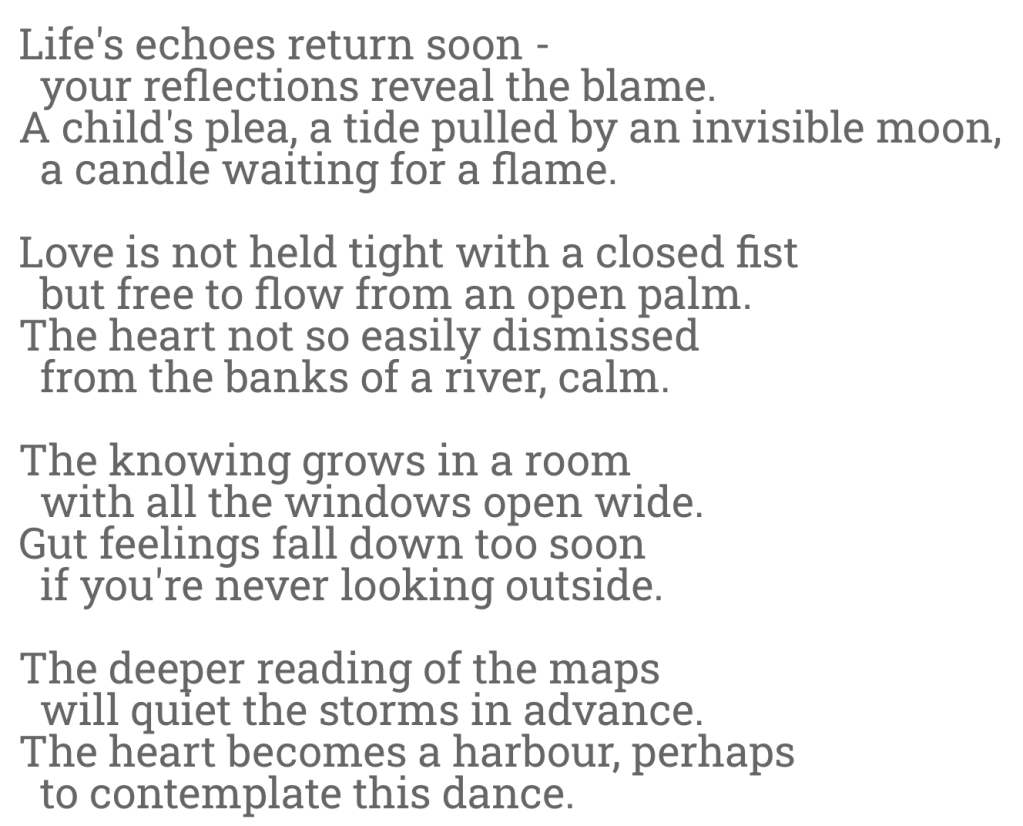 Shared with dVerse MTB quatern and utilising the phrase ‘what happens when the river stops‘ taken from Günter Grass’s ‘What I write about’.