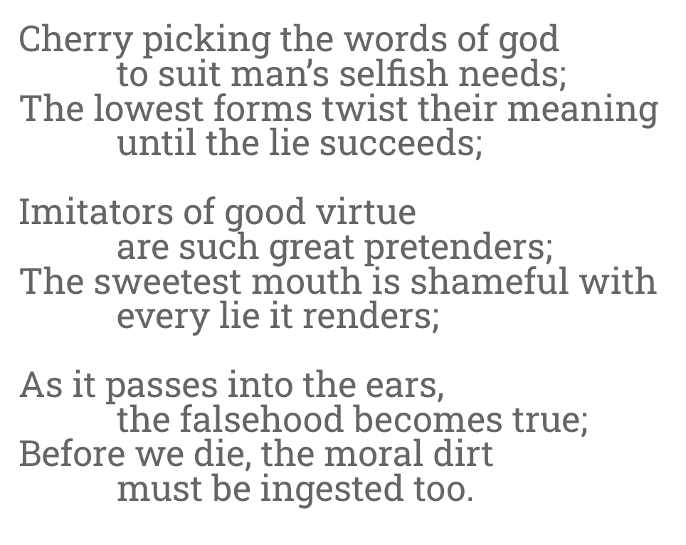 This poem was prompt #10 for the Chimeric Poetry Scavenger Hunt, which I’m slowly working my way through. No more palindromes for me!