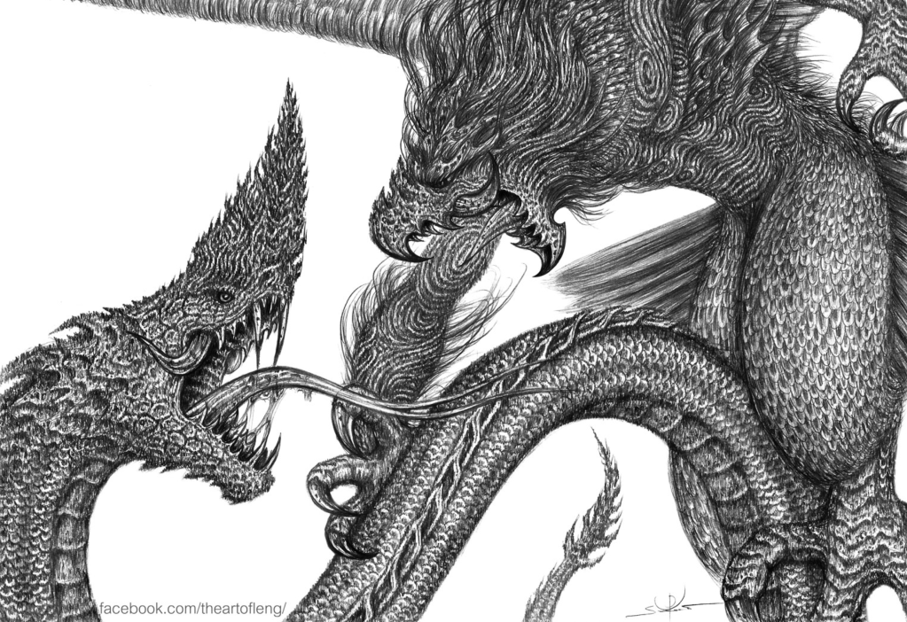 Based on this tale: According to Hindu and Buddhist stories, the giant birdlike Garuda spends all of eternity killing the snake-like Nagas. The feud started when the Garuda’s mother and the Nagas’ mother married the same husband. The husband granted each wife one wish. The Nagas’ mother asked for a thousand Naga sons. Garuda’s mother wished for just two children but that each child would be equal to 1,000 Naga sons. Their rivalry continued until Garuda’s mother lost a bet and became the servant and prisoner of the Nagas’ mother. The Garuda was able to free his mother by stealing the nectar of immortality from the gods. But he swore vengeance for his mother’s treatment and has been fighting Nagas ever since. Shared with dVerse – Tuesday Poetics – creature feature