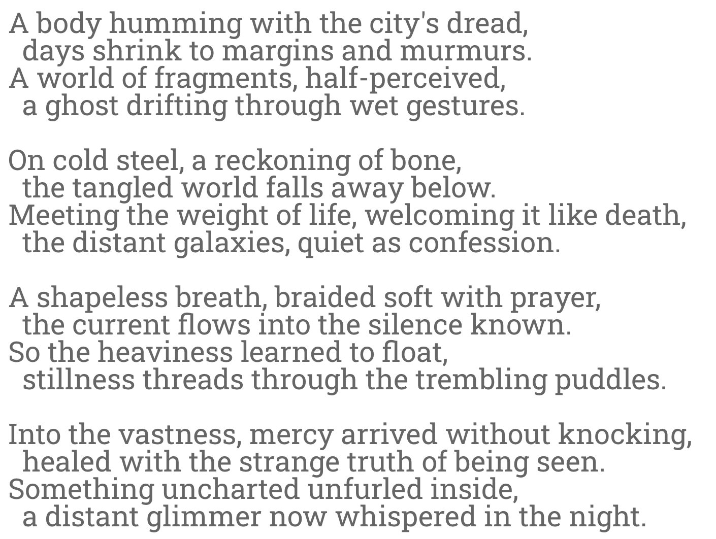 A shapeless breath, braided soft with prayer,