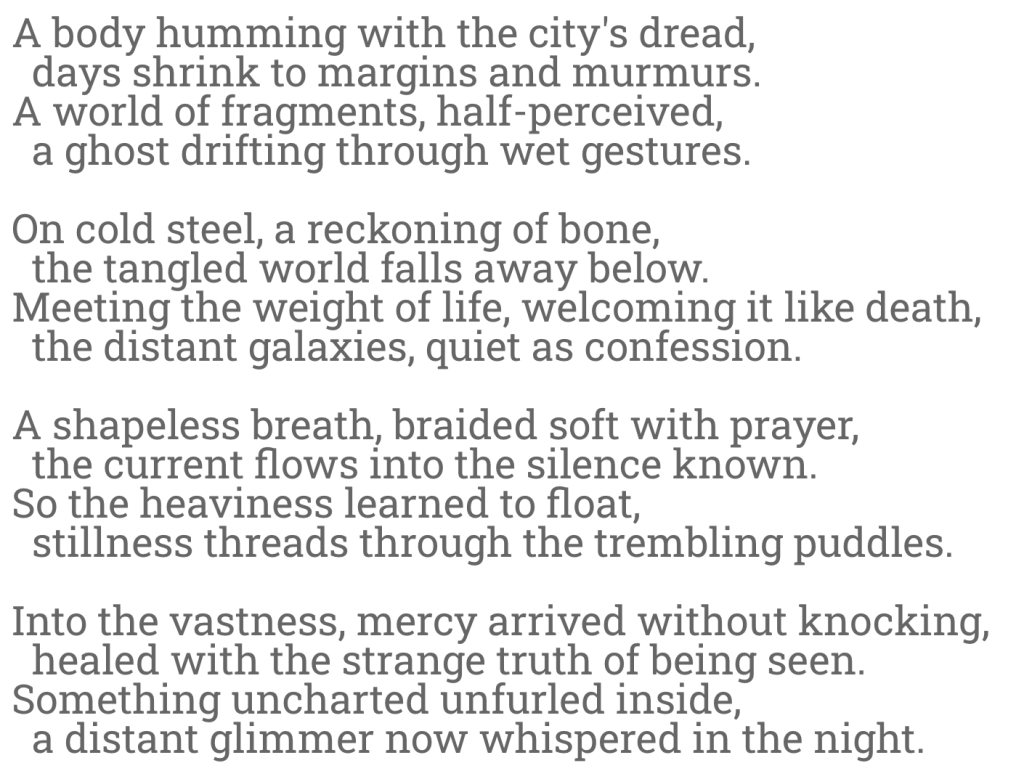 Into the vastness, mercy arrived without knocking,