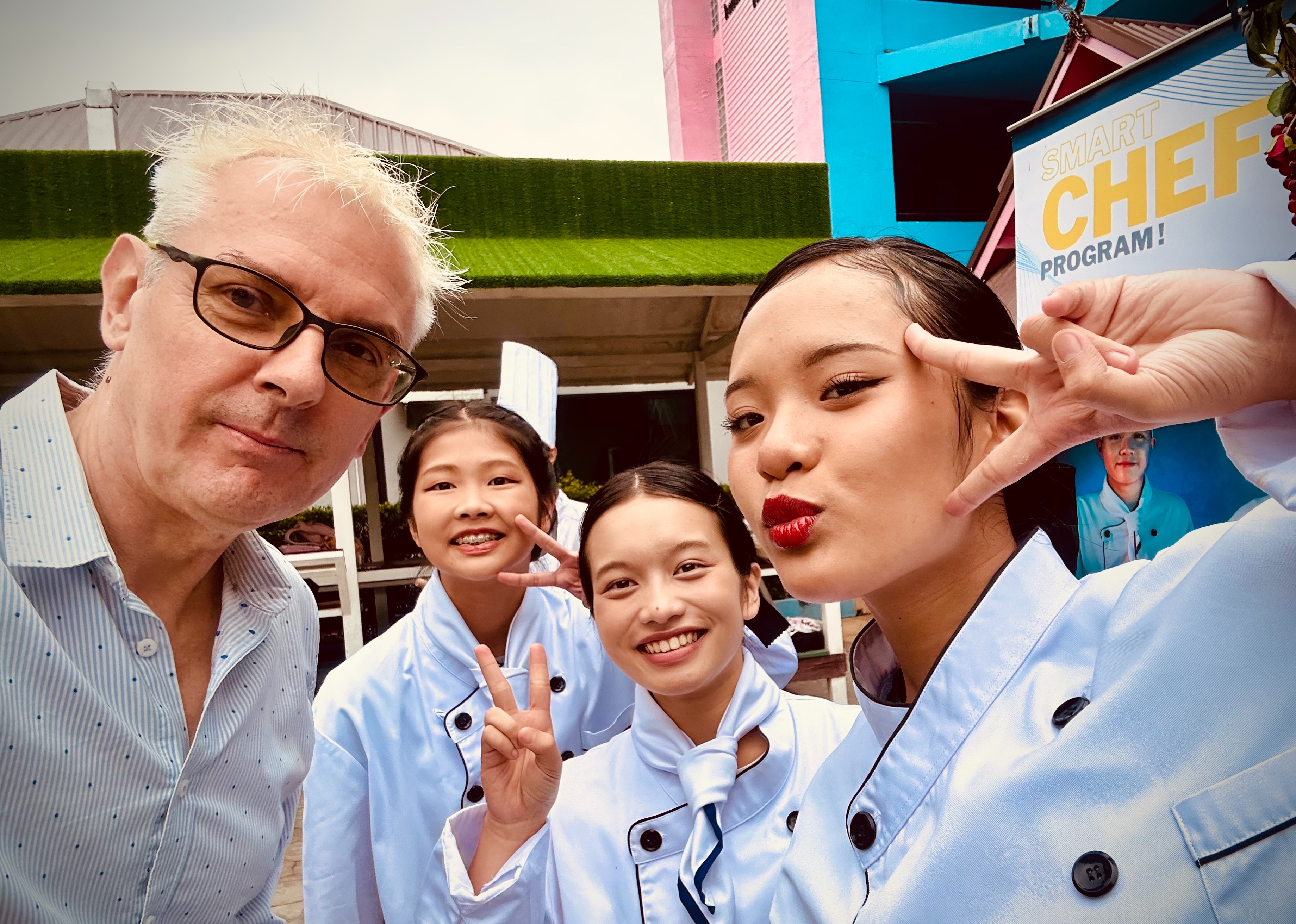 I took this picture because this is my old student Piano in her chef’s outfit. We’re always playful when we meet.