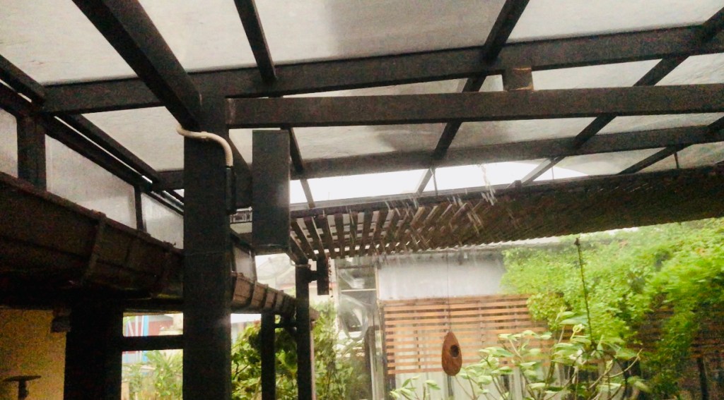 Right now (whilst I’m at school) I’m grateful for the light rain and the anticipation of seeing how well (or more accurately, how badly) the tape on the gutter is working out. I hope it can at least hold some of the water back. (Later – seems it didn’t rain at home!)