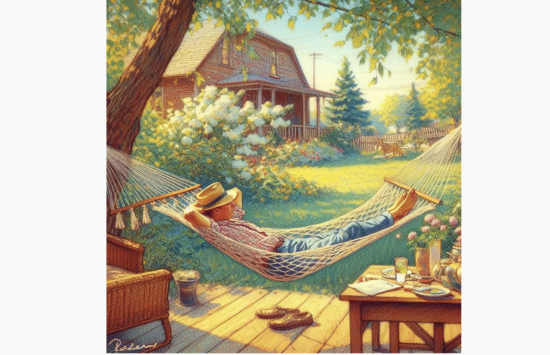 Slowly sipping on iced lemon teas Savouring the freshness of the breeze – Who will prepare the food to bring? – Who will push and pull the swing?