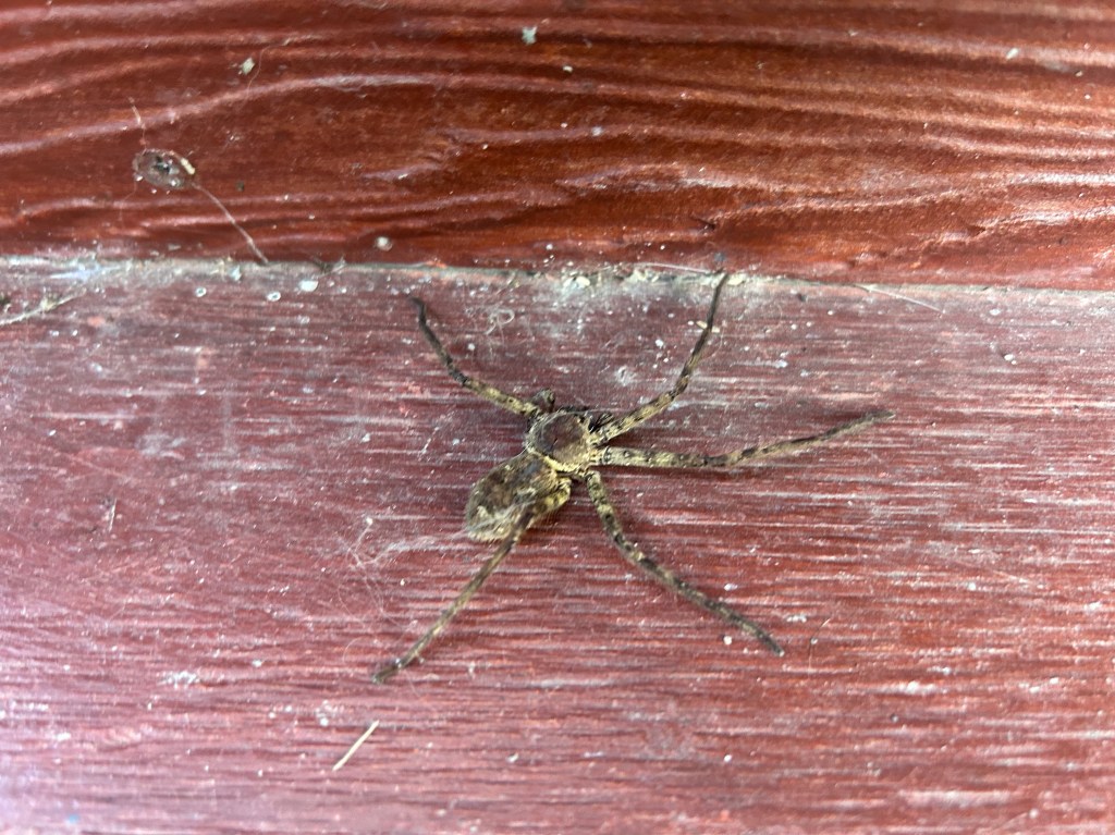 I took this picture because I felt something in my sandal and thought it was just a stone. I kicked it off and this monster came out! With two legs lost he struggled to run off in a straight line. I’m checking my shoes every time now!