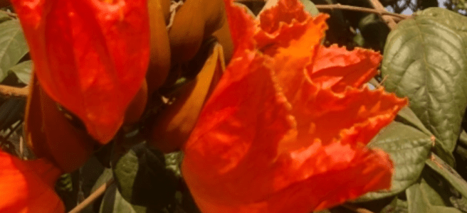 I took this picture because I thought these flowers had all gone already. These are on the corner of the pond below Lake Hill Resort. The pond has now been landscaped for fishing and lots of jungle cleared to transform the area.