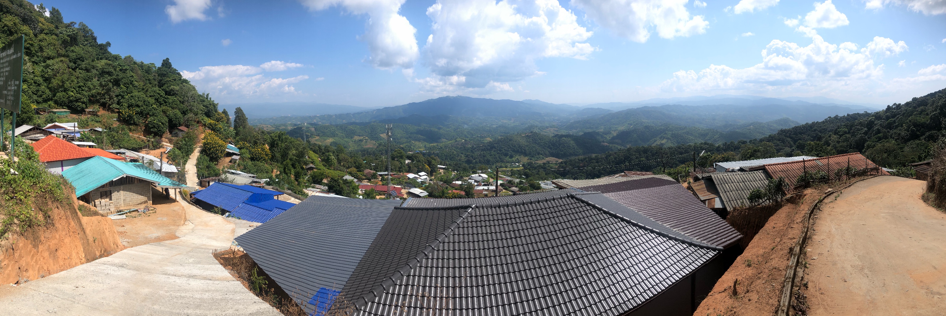 I took this picture because on our bike ride on Saturday Bruno and I ended up in Doi Hua Mae Kham and rode around this developing village with freshly laid concrete. The format of the panorama doesn’t show quite how steep the road is or how spectacular the views were (unless you zoom in a little).