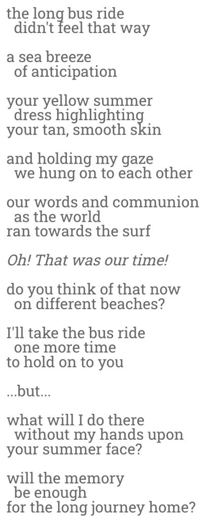 I recall one time, escaping home with the idea that a choice needs to be made and lying in the park alone in the warm spring evening that decision was finally made. My life took a new course from there. That was 1998.