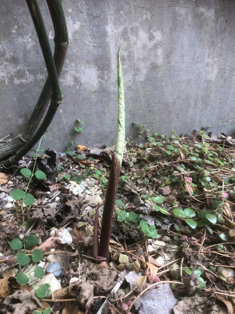 I took this picture because I thought this plant had long since died. It is one of four in a row that Amy planted a couple of years ago and this one has been missing for the last year or so. Looks like it was busy growing underground until the time was right to show itself again.