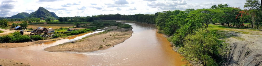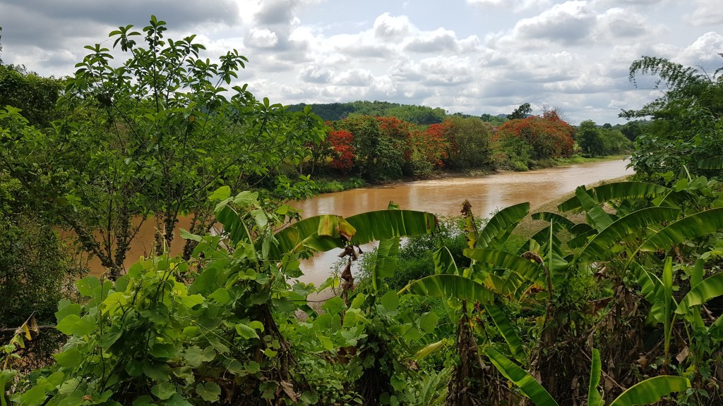 I was due to turn away from the river so stopped a few times to take more pictures. Here, two locals were walking along the banks, possibly looking for fishing spots. They saw me and shouted ‘Hello’ as I replied ‘Sawatdee khap’ in return. People are generally happy and friendly everywhere I go. They are curious about what you are doing and give them something to gossip about when the community gathers in the evenings.