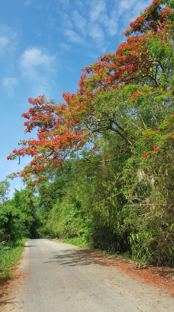The red trees are flowering everywhere though the photos don’t really show up how bright they are. I love these rigid lines of plants growing, they counter the randomness of everything else here in Thailand.