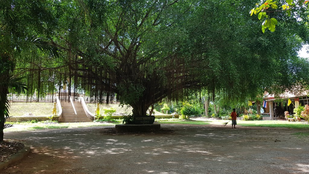 Just around the corner I noticed a big dragon staircase being built and a road up the hill next to it, so I nosily went to have a look. The top opened out into this area with this beautiful tree which I wanted to take home and use for shade in our garden. Behind the tree is a small stupa and I’m wondering now if this was the one I could see before. I thought it was a bit further along than here but I actually didn’t end up going to where I had planned to see what was there. Again, plenty of time to go back and investigate again.