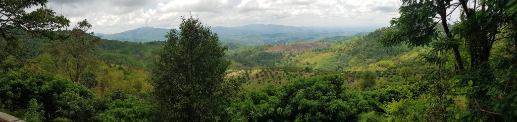 This one is still one the way up. About another 15 minutes later I reached a peak and took some video (which I can’t upload here). It’s a panaroma around both sides of the ridge and it is absolutely silent except the buzzing of insects. No industry, no people, no machines. Just nature. If you can zoom in to this picture you’ll find Kwanyin as a tiny white dot in the distance.