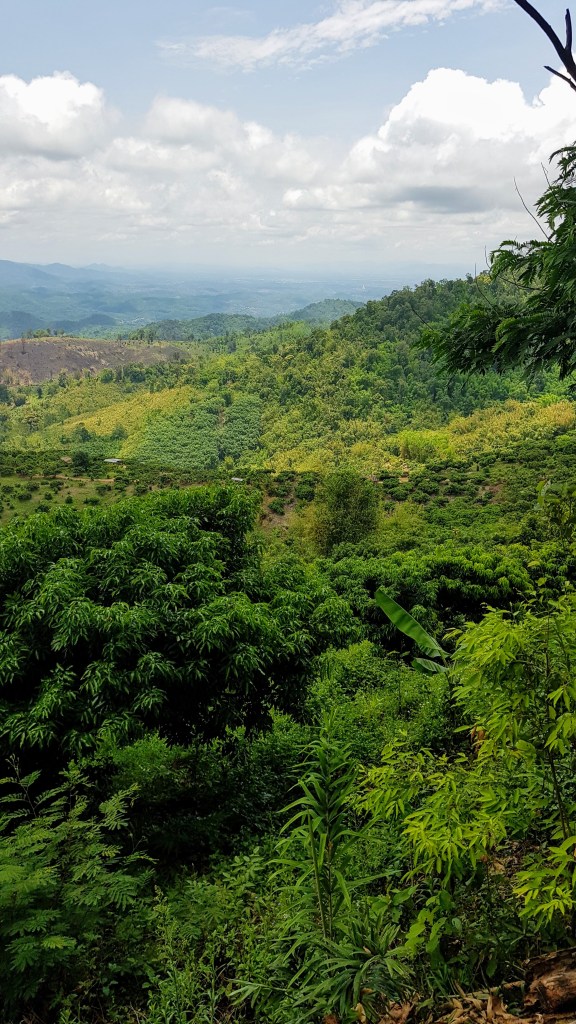 And so, to the other side. Now, getting down was a scarier prospect than going up. Just over the edge here turned into thick mud and brakes became less functional. I could hear the roar of engines in the distance and presently four teenagers rounded the corner on their trail bikes and we smiled and nodded at each other and I’m sure they had a good laugh at the silly foreigner trying to navigate these roads with his little step through motorbike. Whatever, I made it down safely.