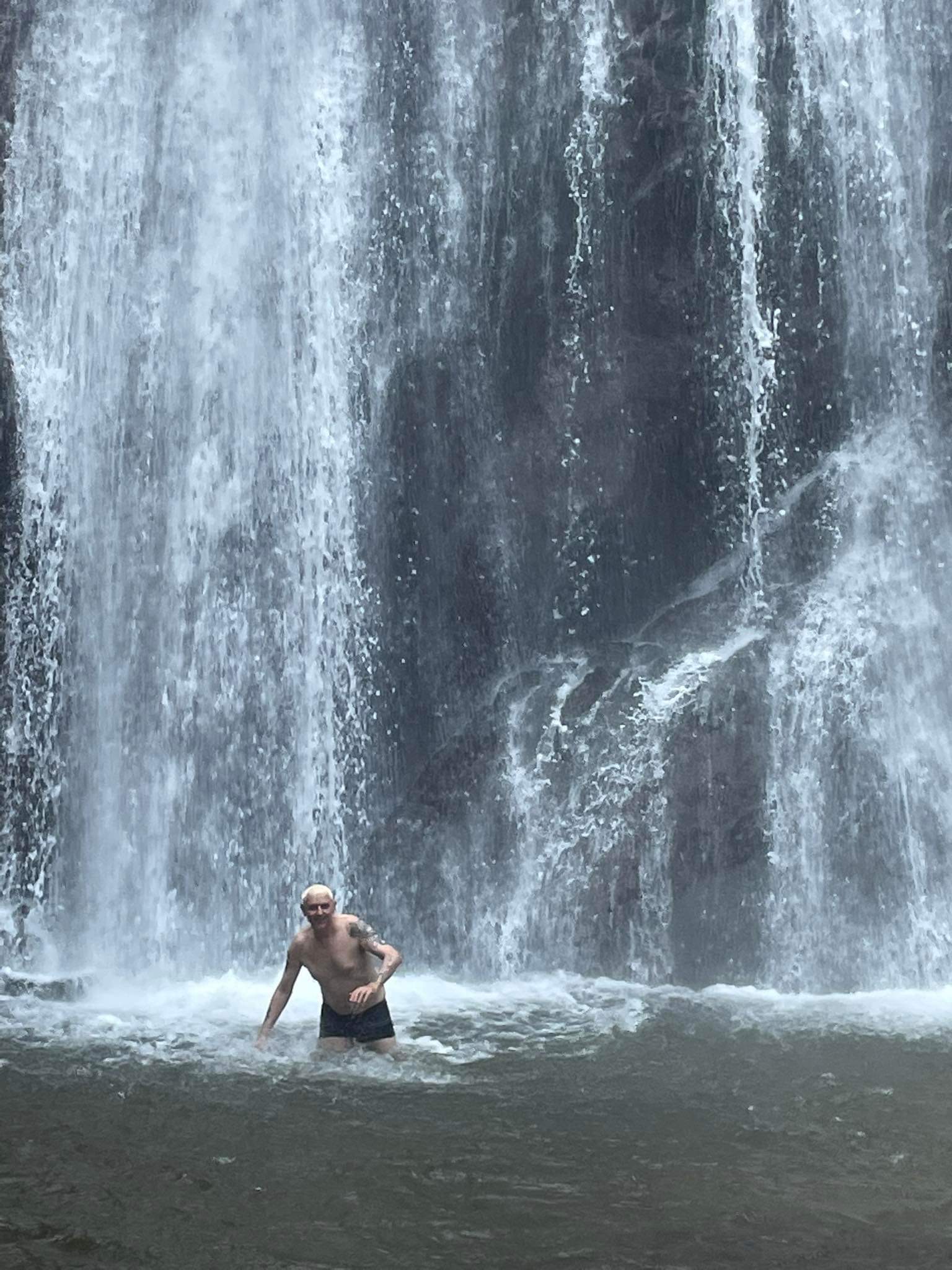 Getting under the waterfall and having the air sucked out of my lungs. It was freezing and invigorating and I felt cosy once I got my shorts and t-shirt on again. I should sleep well tonight.